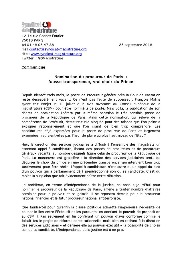 Le fait que Emmanuel Macron s’immisce ainsi dans le choix du successeur de François Molins est très inquiétant concernant la séparation des pouvoirs. L'exécutif a de facto entravé le bon fonctionnement des institutions.
