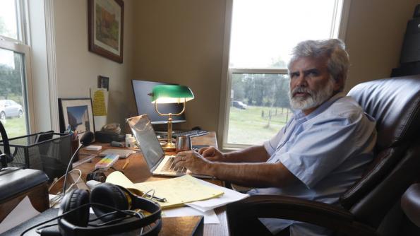 Robert Malone dans son bureau situé dans sa ferme équestre à Madison, aux Etats-Unis, le 22 juillet 2020.